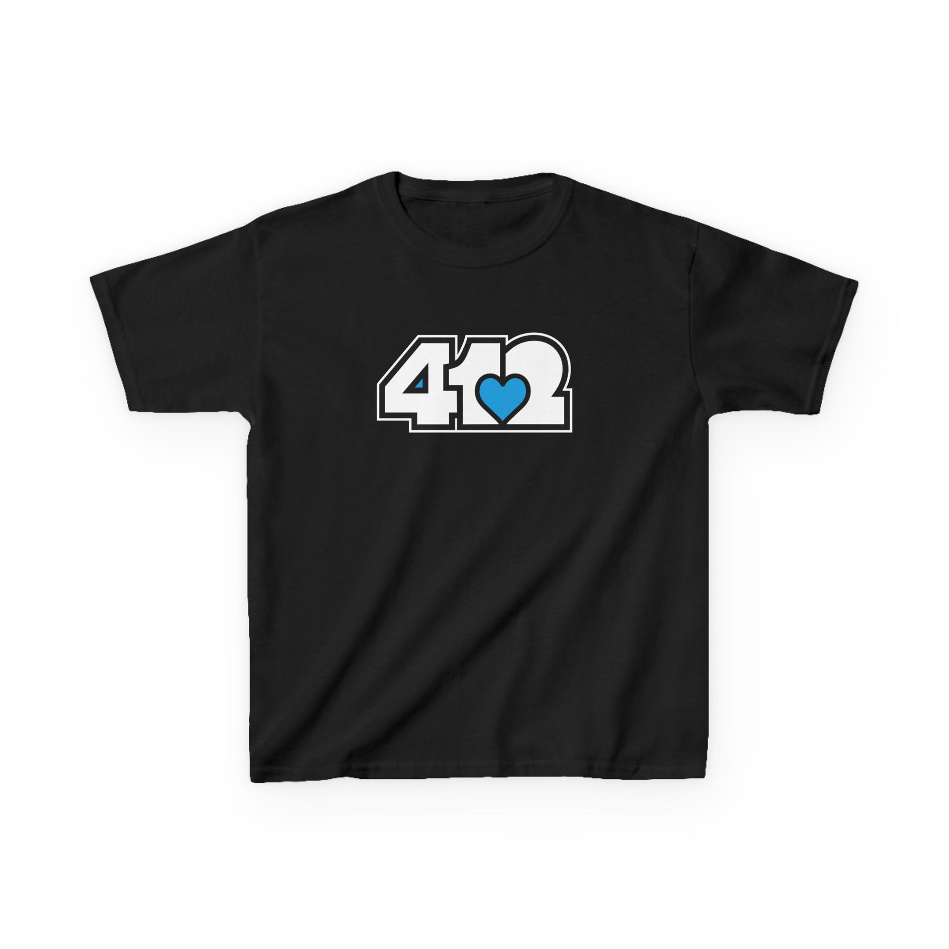 412 Kids Cotton Tee - Blue Heart, White Logo